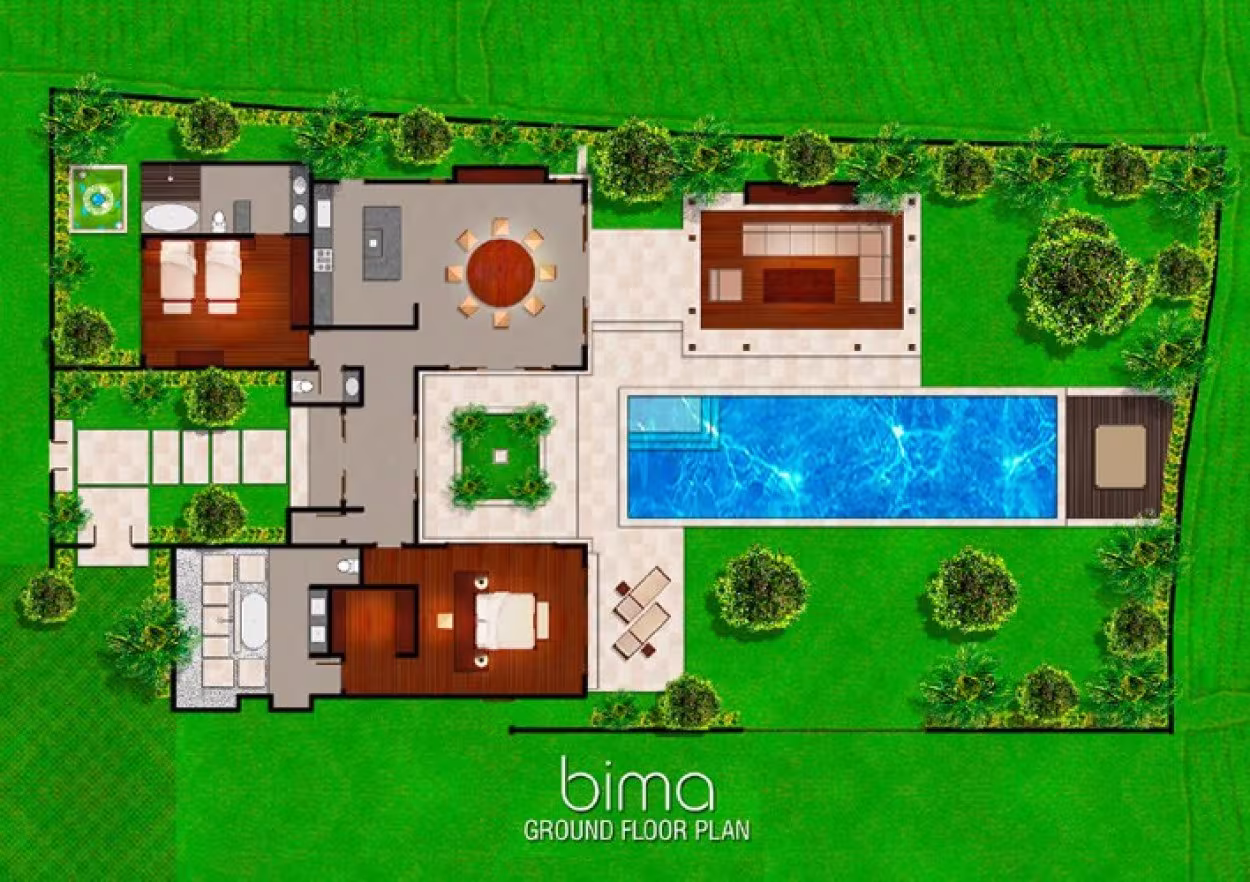 Villa Bima Saba Saba Villa ist Teil des Komplexes, in der Nähe der Berawa Strand in Bali. Saba Bima hat zwei geräumige Schlafzimmer mit, ein eigenes Bad und einen großen, klimatisierten Speiseraum, mit einer separaten Gästetoilette, neben einer offenen, voll ausgestattete Küche und Pool. Verbunden mit dem Esszimmer durch einen überdachten Gang. SABA ist weniger als 10 Minuten von Seminyak. Entworfen von international renommierten Architekten, Ross Franklin.